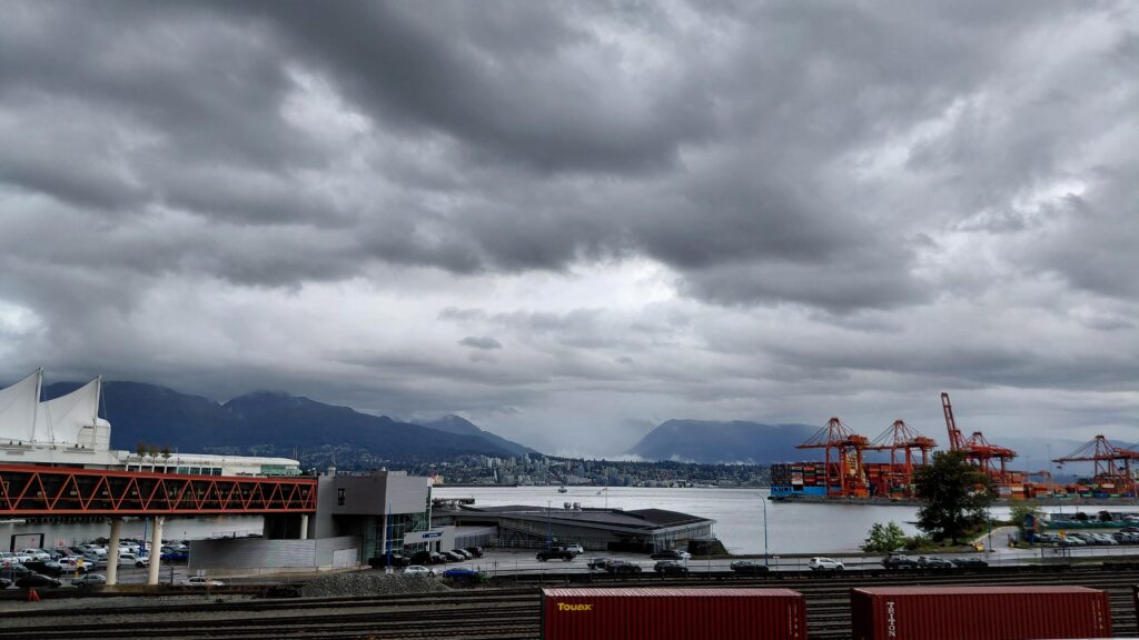 Up at 4 am Eastern time to catch a Lyft to the airport. Short flight to Chicago, medium flight to Vancouver. Everything is biometric now. Scan your face instead of your passport or boarding pass, though sometimes you have to scan those too. YVR is decorated in beautiful Musqueam sculptures carved out of towering cedar, but is otherwise kind of run-down. Bathroom doors falling off the hinges. I sit for a bit trying to collect myself over scalding, watery Tim Hortons. The train to downtown is right outside the door, but it takes me 20 minutes of wandering around to figure out how to get into it. Shipping containers everywhere. Vancouver is my kind of town.